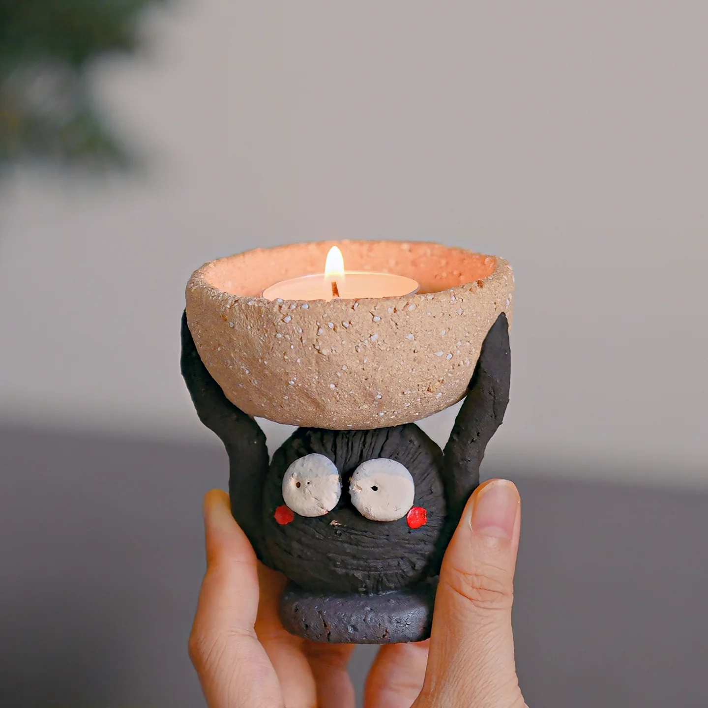 There’s something incredibly heartwarming about this little guy. Sculpted from rough, coarse pottery, the texture mimics the soot and dust of the original character perfectly—it’s not smooth or polished; it’s earthy and real. In the movie, they carry coal to keep the bathhouse running. In your home, they carry a flame to keep your space warm. It transforms a simple tea light into a tiny magical companion, peering out from the shadows with those wide, curious eyes. It’s a quiet reminder that magic often hides in the smallest, darkest corners.