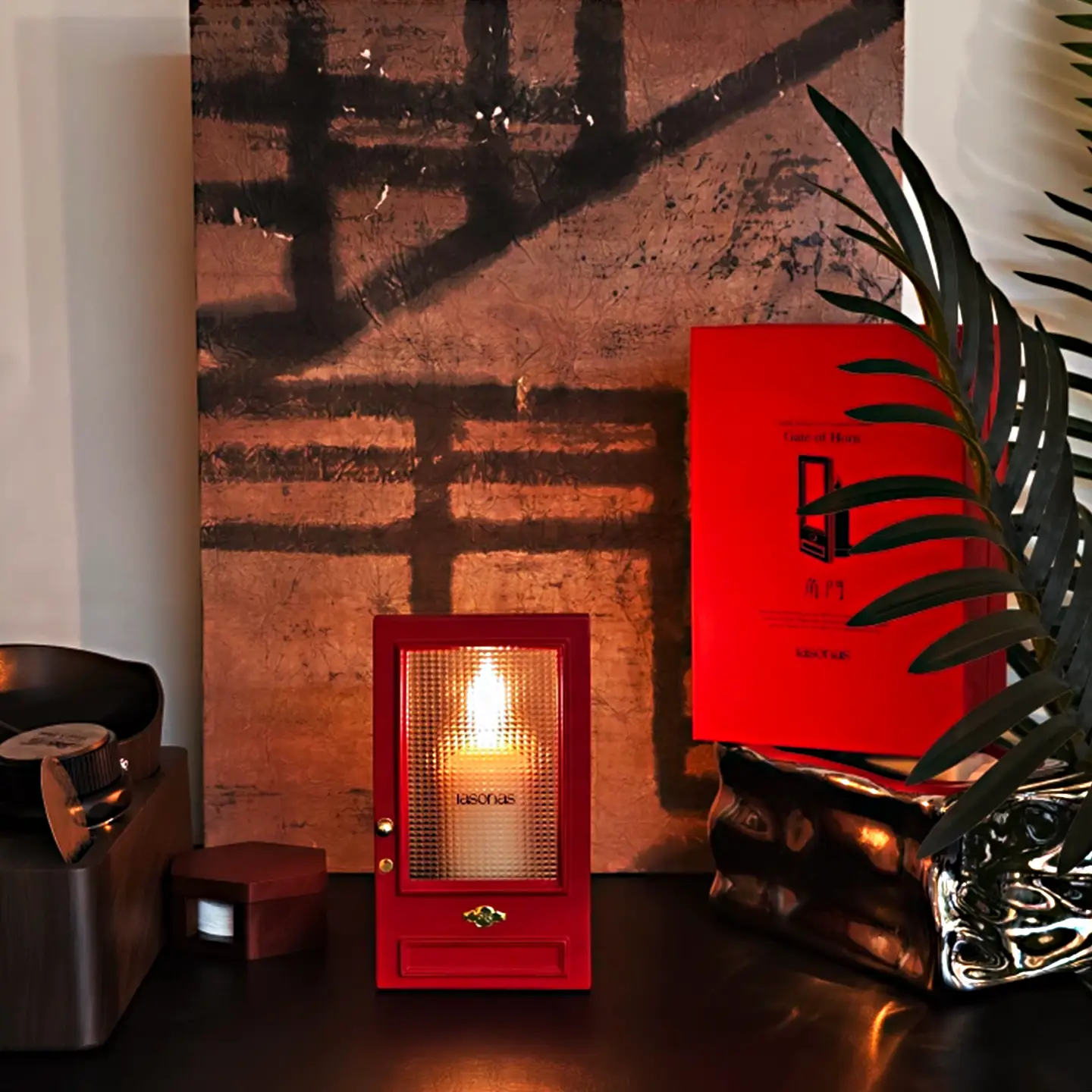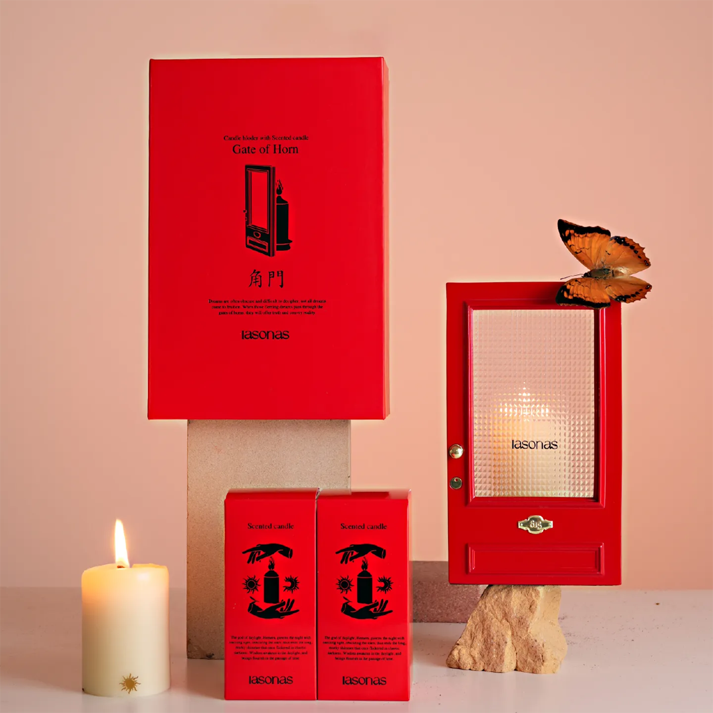 Inspired by The Odyssey, this red gate features a textured optical lens that transforms candlelight into a dreamy, cinematic ripple.A piece of meaningful aesthetic decor that creates a cozy, mysterious vibe.